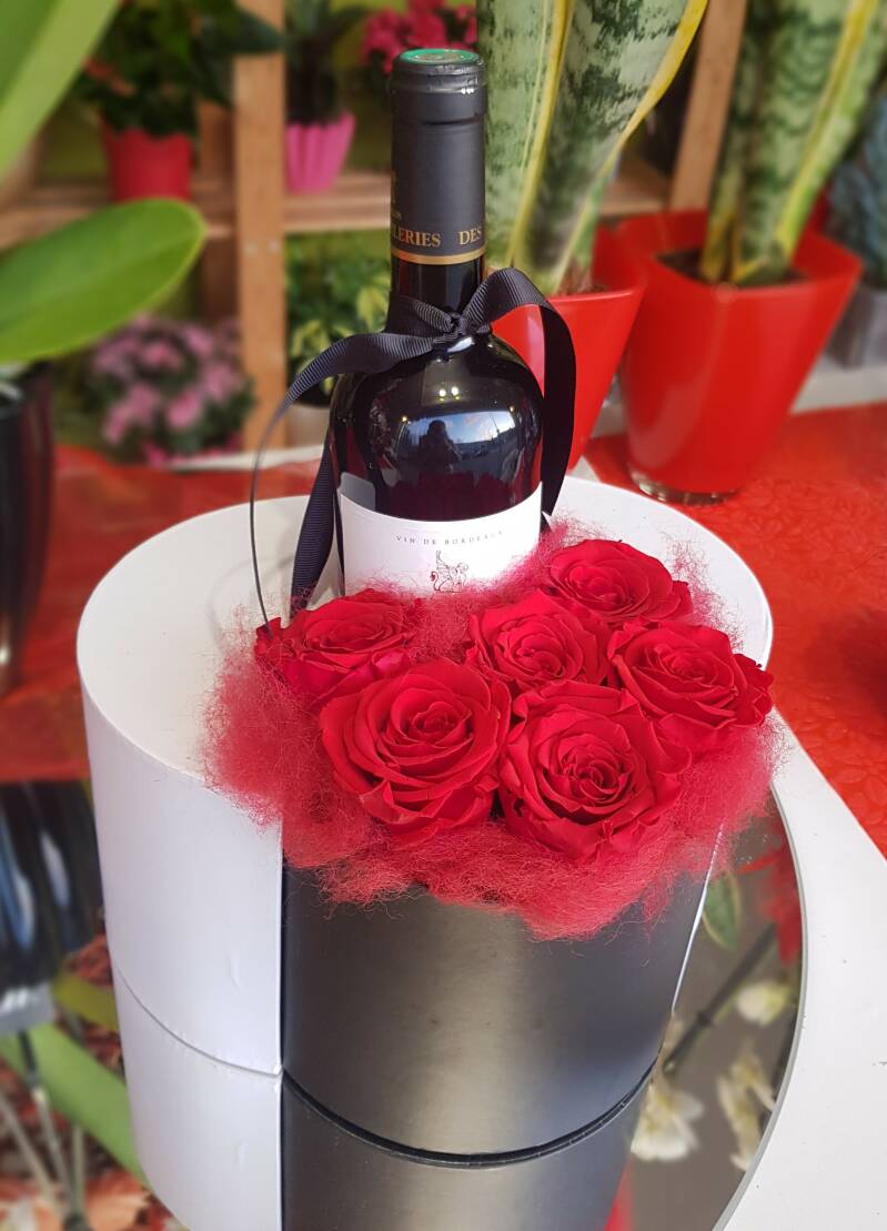 Stijlvolle flowerbox samengesteld met verse bloemen en perfect gecombineerd met een bijpassende doos.